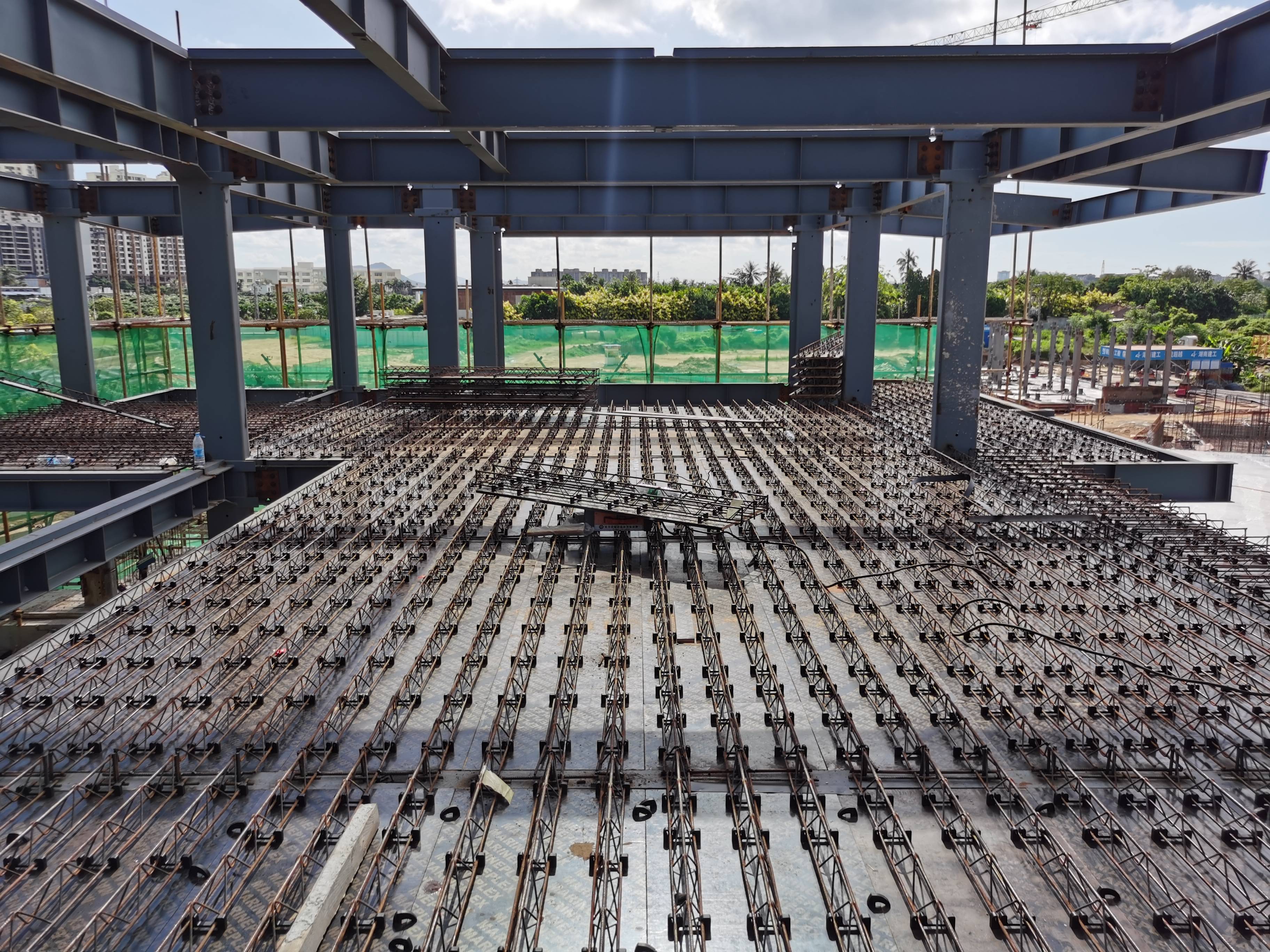 上層鋼筋桁架由腹桿鋼筋與上下弦鋼筋焊接而成,構成三角形桁架,承擔主要承重責任。下層則采用鍍鋅壓型鋼板,既作為模板支撐使用,也參與受力。當混凝土澆筑完成后,這些組件將共同形成穩固的組合樓板。